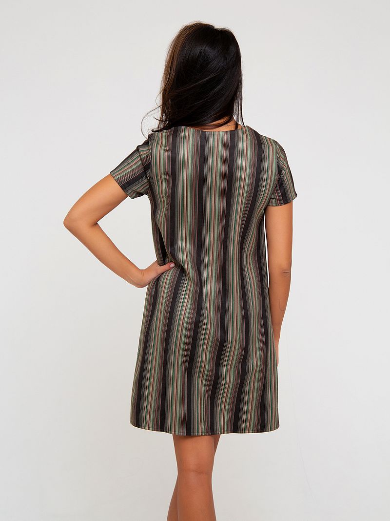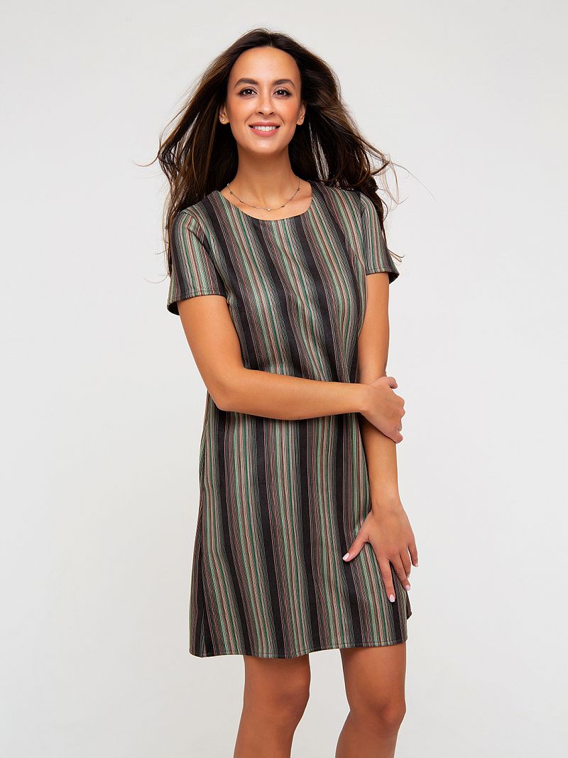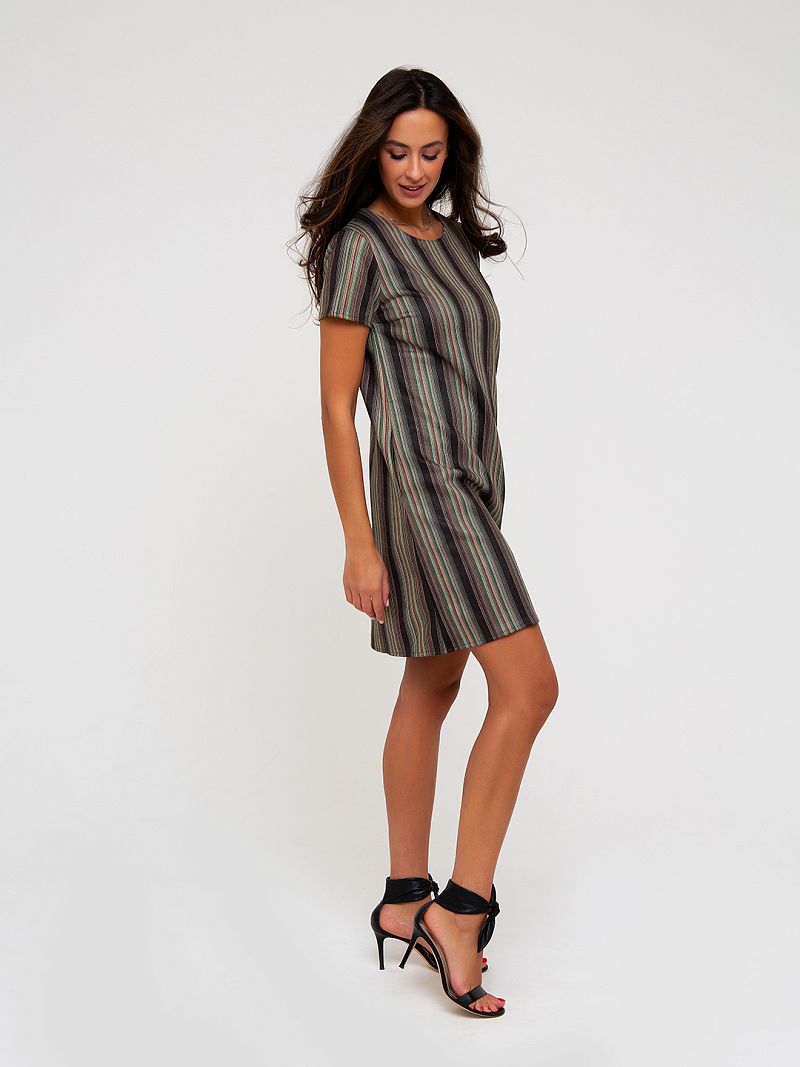 Повседневное женское платье с оригинальным принтом "полоска". Модель свободного кроя, выполнена из мягкого плотного трикотажа. Состав: 95% п/э+5% эластан