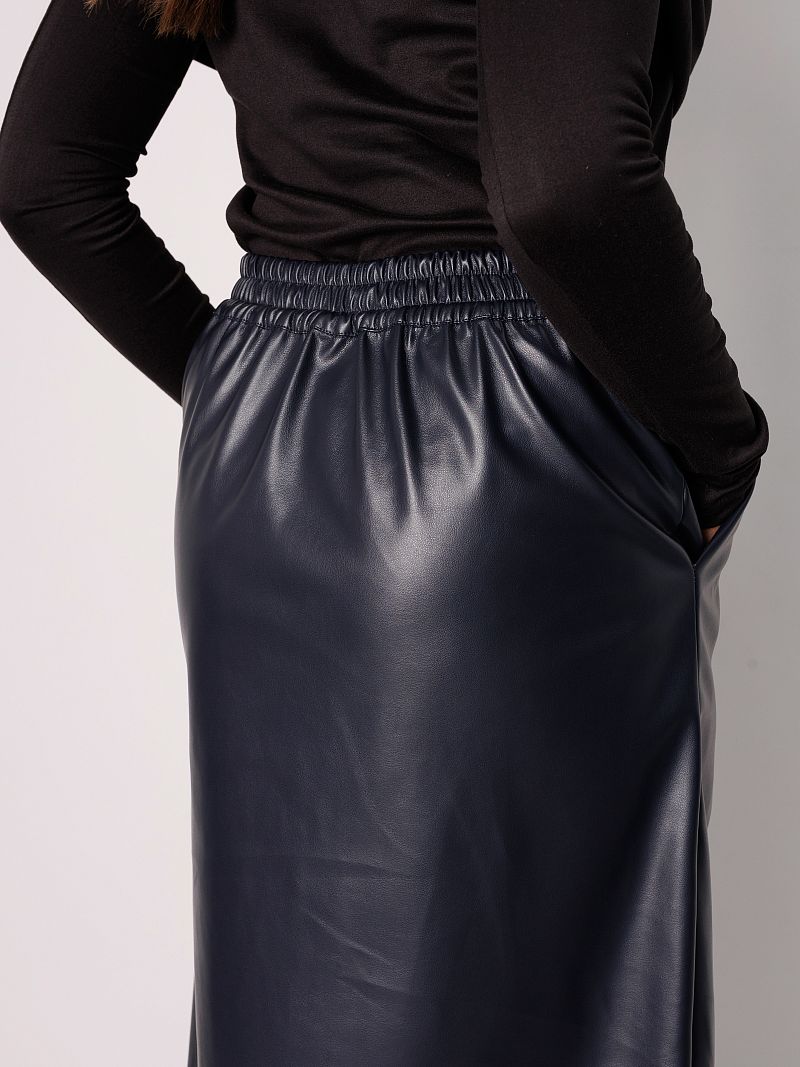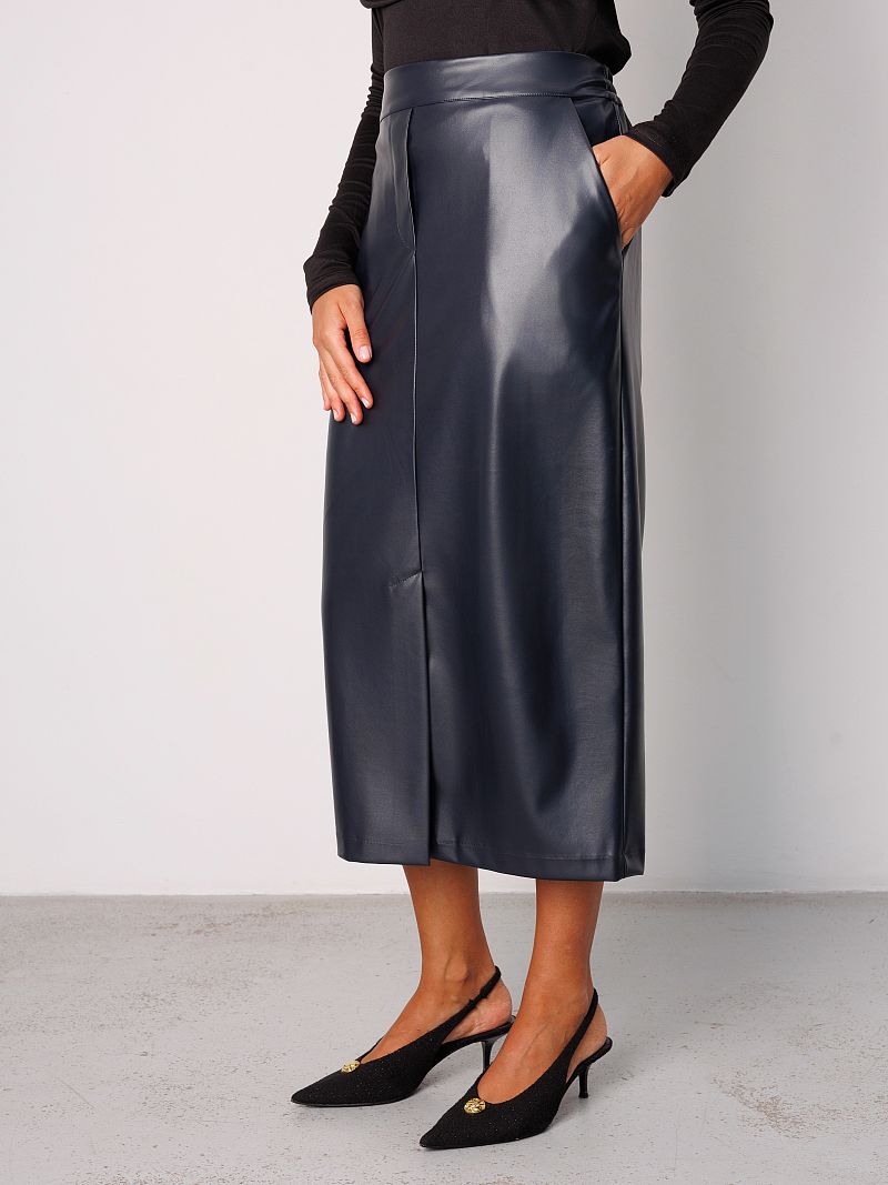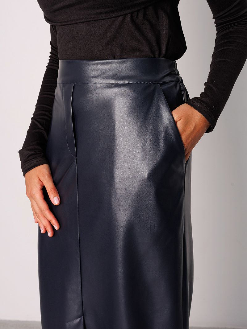 Юбка женская от Raposa станет стильным дополнением Вашего гардероба. Эта элегантная нарядная модель выполнена из гладкой экокожи, которая не мнется и сохраняет свой безупречный вид в течение всего дня. Прямой классический покрой юбка офисная подчеркивает фигуру, а длина миди зрительно вытягивает и стройнит, делает ее подходящей для повседневной носки и для роскошных праздничных вечерних выходов. Удобная резинка сзади обеспечивает комфортную посадку, а разрез спереди добавляет образу игривости и динамичности. Наличие карманов в боковых швах добавляет изделию практичности. Кожаная юбка с подкладом на байке представлена в темно-синем цвете , который легко сочетается с любыми другими оттенками. Благодаря тщательно выверенным лекалам, трендовая модель pinterest из экокожи идеально подойдет девушкам больших размеров плюс сайз до 54 и 56 размера, а также для девочки подростка как школьная или для праздника. Эта юбка теплая на флисе станет базовым элементом Вашего осеннего гардероба. Внутренняя отделка из замши приятна к телу, обеспечивает дополнительную теплоизоляцию. Юбка длинная из искусственной кожи old money представлена в коллекции осень 2025 и станет отличным выбором как для работы, офиса, школы, так и для прогулок в прохладную погоду.