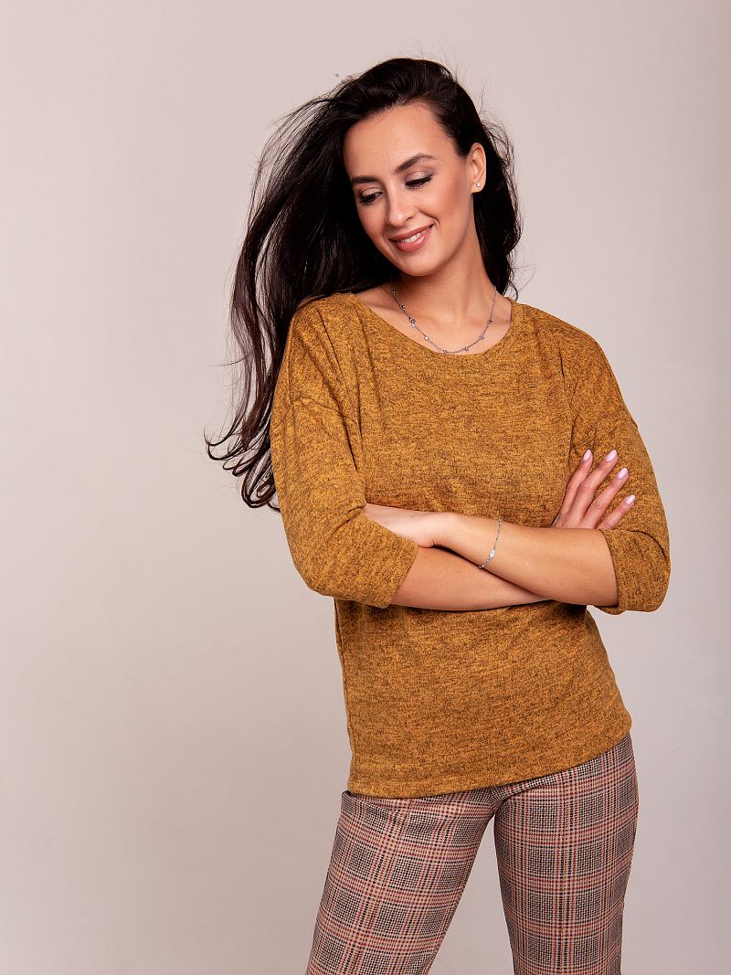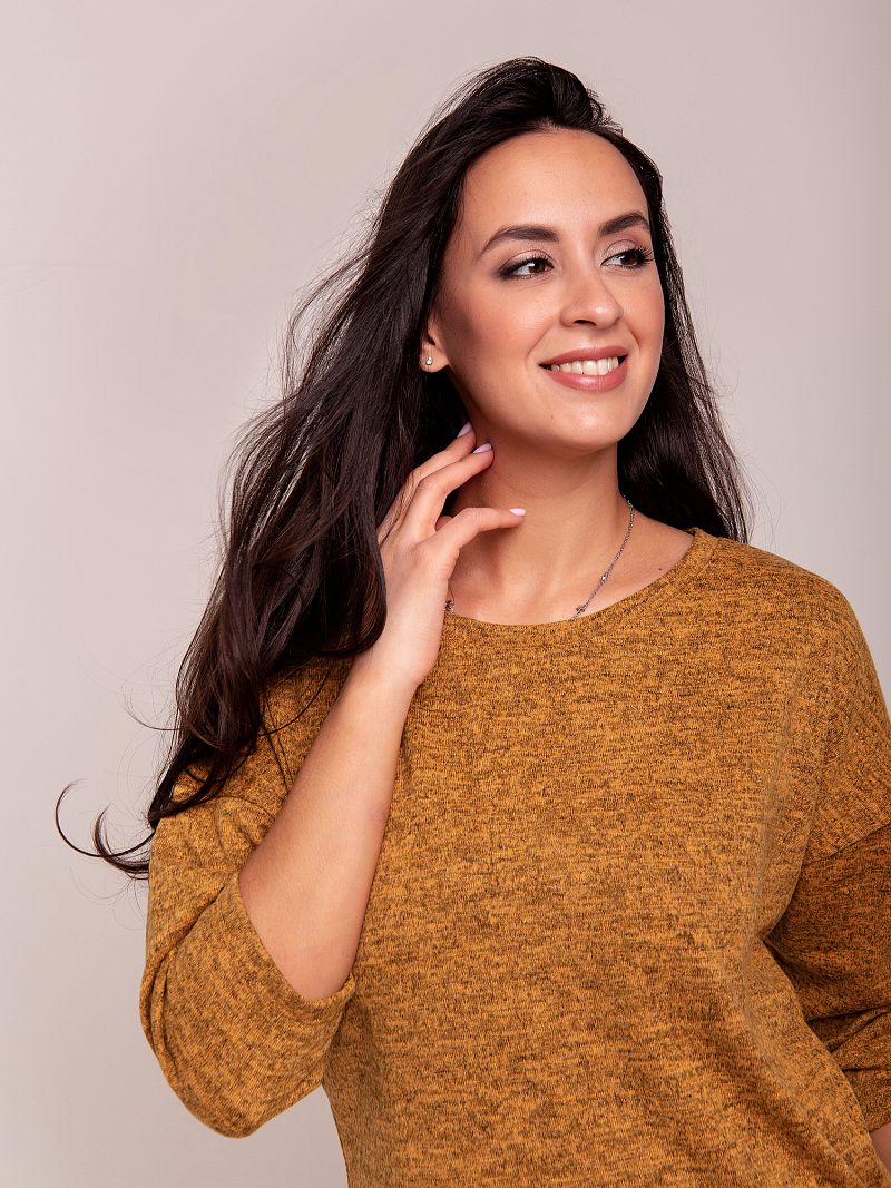 Практичный и удобный джемпер в сдержанной цветовой гамме. Джемпер лаконичного дизайна. Рукав 3/4. Горловина округлая. Ткань - плотный, но достаточно эластичный трикотаж. Состав: 30% вискоза, 70% полиэстер. Длина изделия 59 см. Рост модели на фото 173 см.