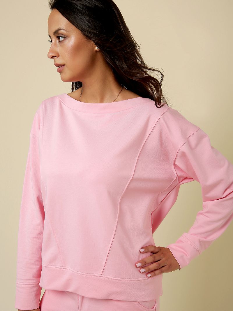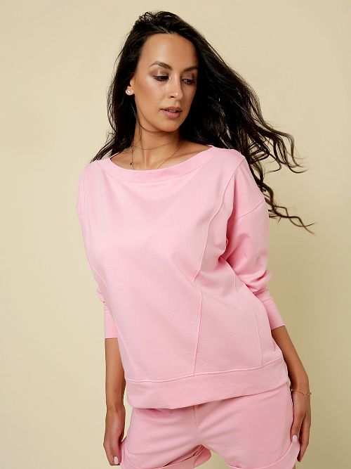 Стильный костюм яркой расцветки, состоит из кофты и шорт. Кофта лаконичного дизайна, дополнена манжетами по краю изделия и на рукавах. Рукав длинный. Вырез горловины "лодочка". Шорты на резинке, с отворотами, кроме того дополнены боковыми карманами. Ткань - футер, который отличается удобством и комфортом в использовании. Такая модель - идеальный выбор для ярких летних прогулок. Состав: 95% хлопок, 5 % эластан. Длина изделия . Рост модели на фото 173 см.