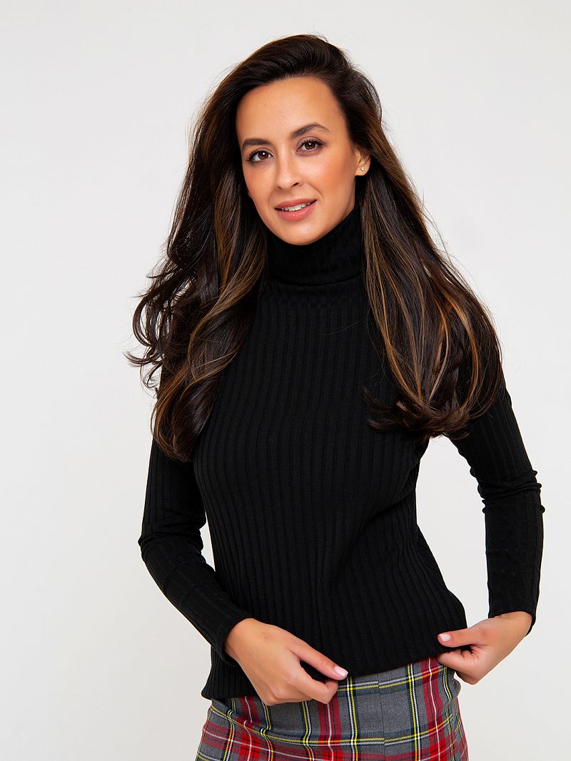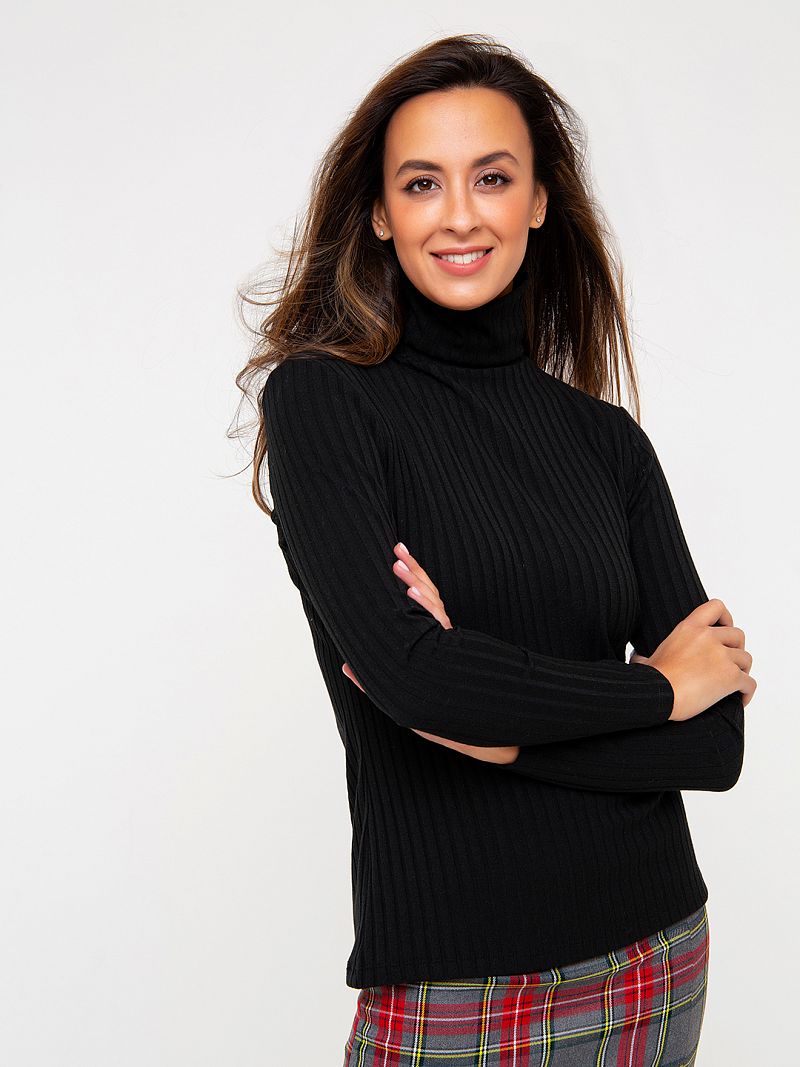 Водолазка из мягкого и эластичного трикотажа, выполнена в базовых тонах. Модель лаконичного дизайна, выполнена из структурной рибаны (лапша). Рукав длинный. Ворот - "гольф". Водолазка - одна из незаменимых вещей базового повседневного гардероба. Она прекрасно сочетается с юбкой-карандаш, брюками или джинсами. Состав: 72% п/э, 23% вискоза, 5% эластан. Длина изделия 58 см. Рост модели на фото 173 см.