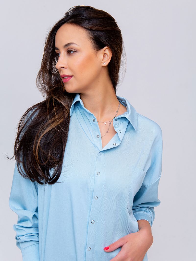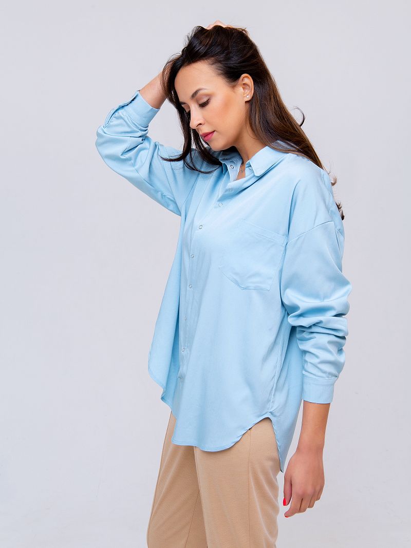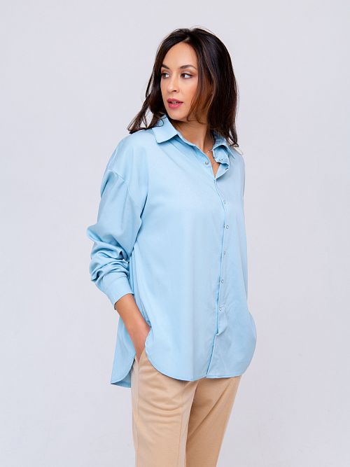Рубашка женская свободного кроя с длинным рукавом и спущенным плечом - это сочетание элегантности и актуальности этим летом подарит Вам ощущение легкости. Свободная посадка скроет недостатки и подчеркнет достоинства! Сочный розовый или голубой - эти цвета прекрасно сочетаются с классическими черными брюками или юбкой или даже рваными джинсами в стиле гранж. Все зависит от Вашего настроения!