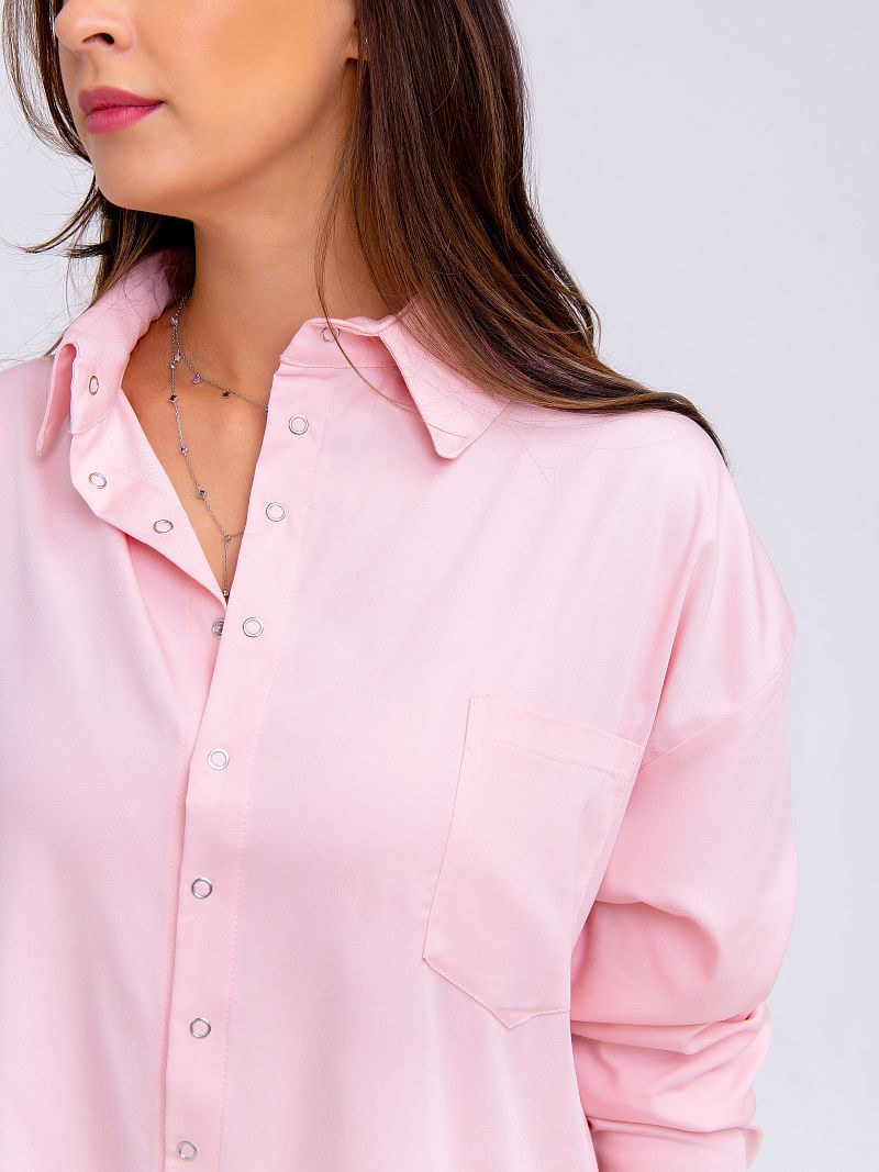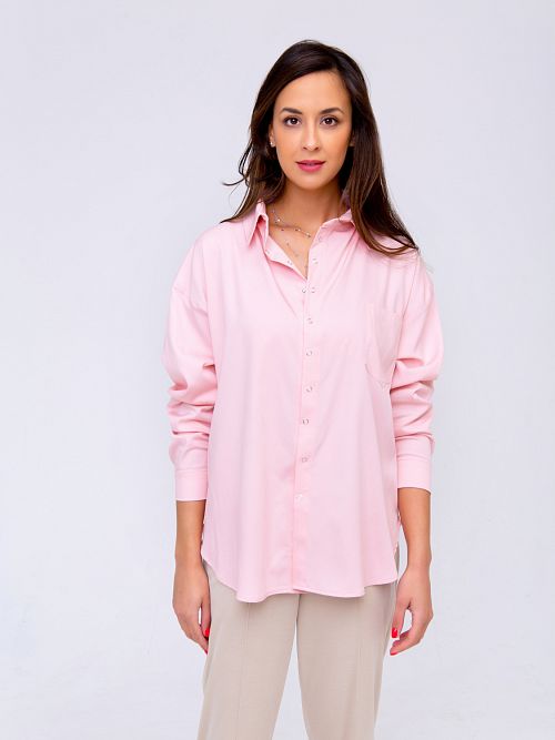 Рубашка женская свободного кроя с длинным рукавом и спущенным плечом - это сочетание элегантности и актуальности этим летом подарит Вам ощущение легкости. Свободная посадка скроет недостатки и подчеркнет достоинства! Сочный розовый или голубой - эти цвета прекрасно сочетаются с классическими черными брюками или юбкой или даже рваными джинсами в стиле гранж. Все зависит от Вашего настроения!