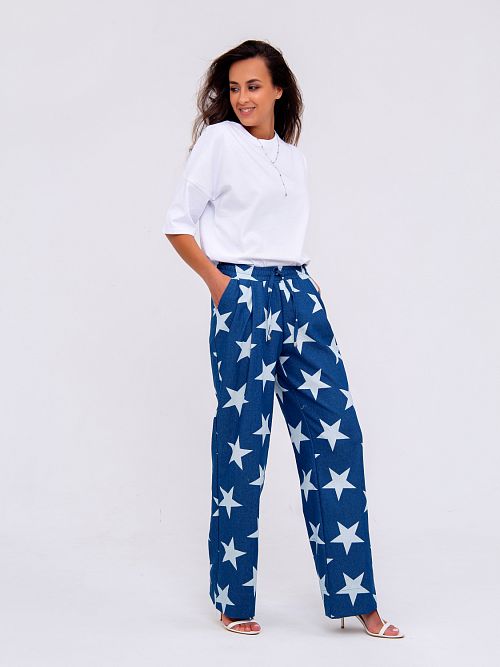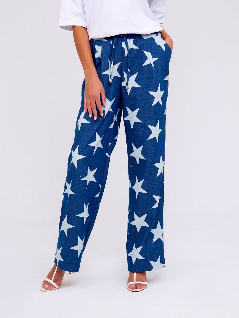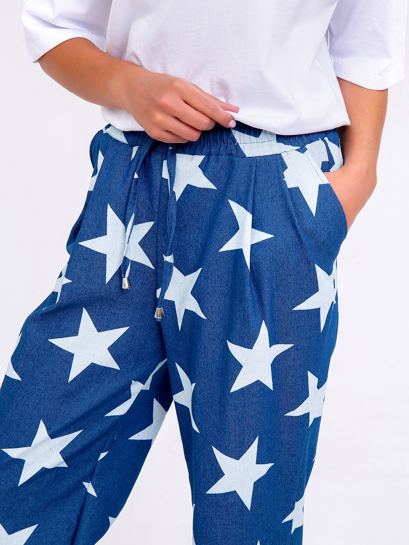 Хлопковые брюки в модных насыщенных оттенках - тренд летнего сезона. Модель свободного кроя, что не стесняет движений в условиях городской суеты. Кроме того, изделие дополнено боковыми карманами. Состав: 100% хлопок. Длина изделия 108 см . Рост модели на фото 173 см.