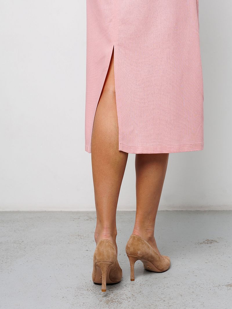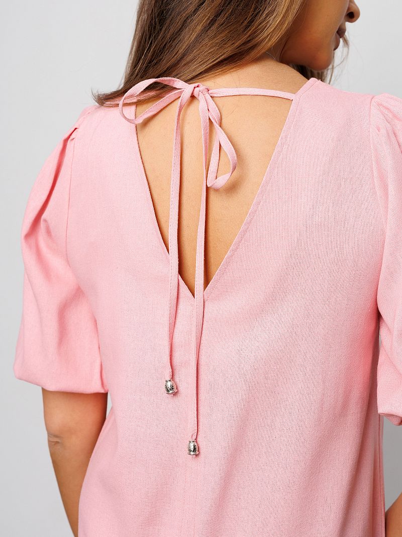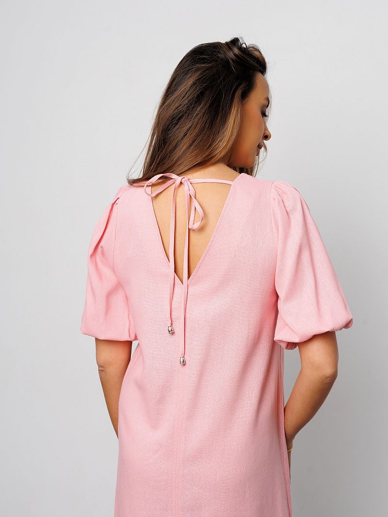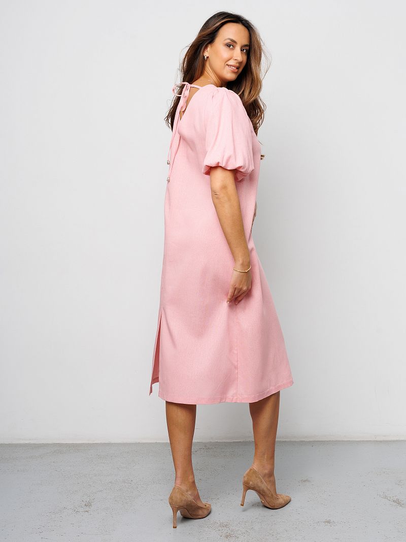 Сшитое из дышащей смеси льна и вискозы, оно подарит комфорт и свежесть в жаркие дни. Прямой крой и длина миди делают платье длинное универсальным вариантом как офисное деловое, так и для вечерних прогулок. Открытая спина на завязках добавляет нотку романтичности и женственности, а разрез на ноге сзади подчеркивают грацию движений. Платье сарафан без подкладки, что делает его еще более легким и воздушным. Платье крестьянка с рукавами фонариками подходит для полных женщин больших размеров плюс сайз до 54 и 56 и беременных, обеспечивая свободу движений. Благодаря однотонному дизайну, пляжное розовое платье можно легко комбинировать с различными аксессуарами, создавая как повседневные, так и праздничные образы. Летнее платье макси станет лучшим выбором на любое торжество: на выпускной 9, 11 класс, на свадьбу подружкам, на последний звонок или день рождения. Коктейльное платье можно носить как нарядное, так и в качестве туники для девочки. Платье баллон подойдет для тематической фотосессии олд мани.