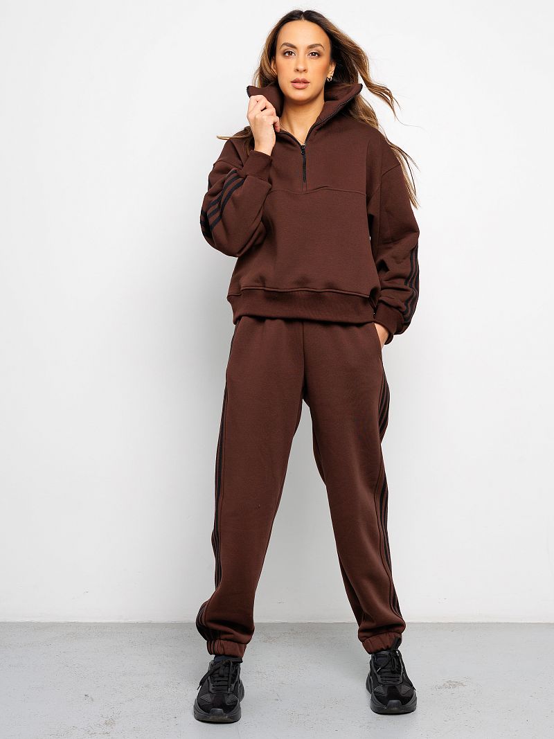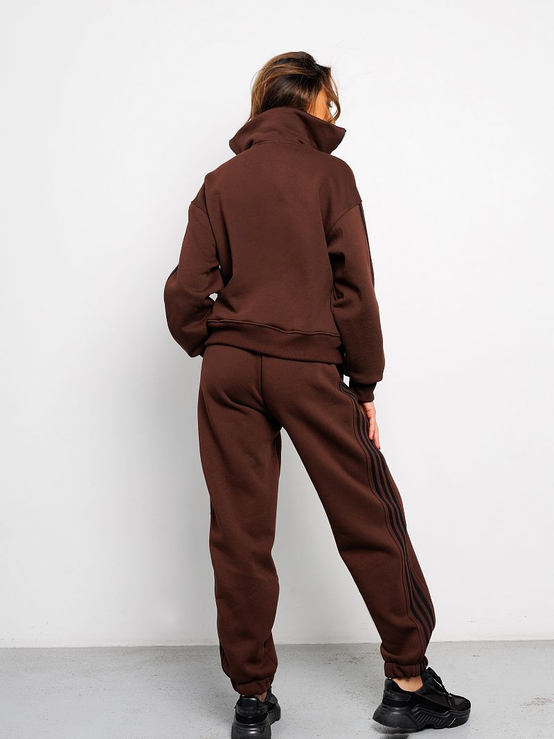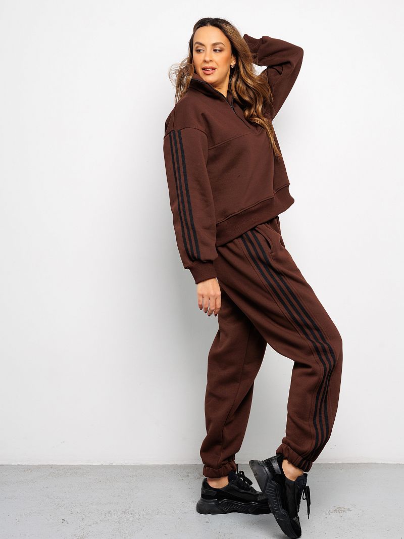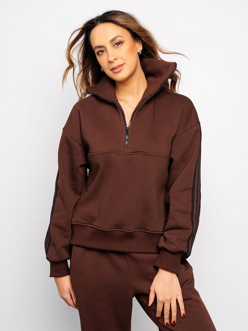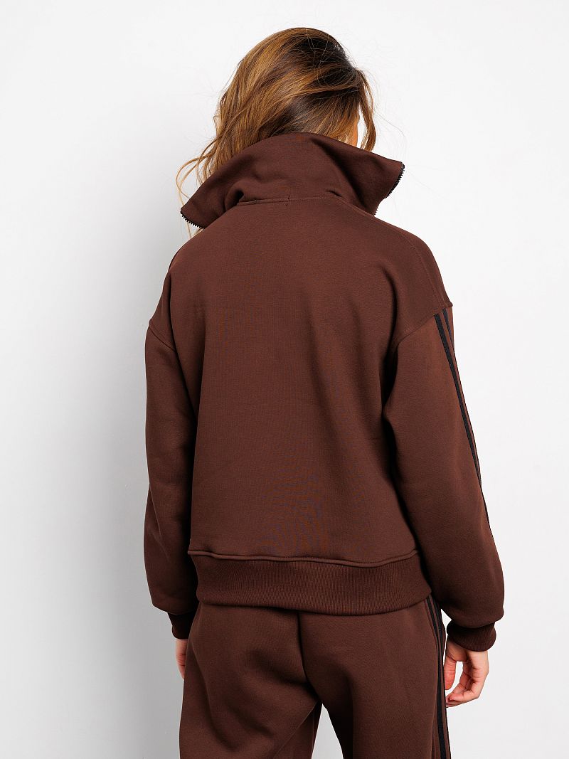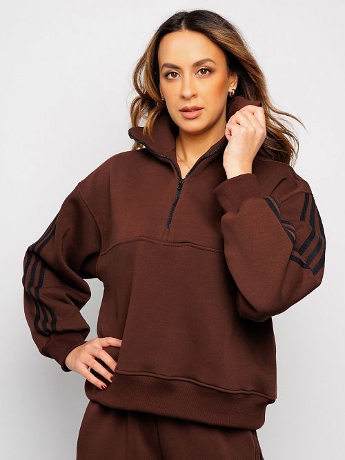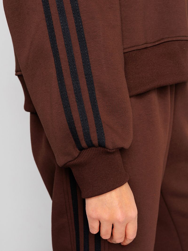Рукава кофты декорированы лампасами, 3 полоски в стиле адик придают образу динамики.
