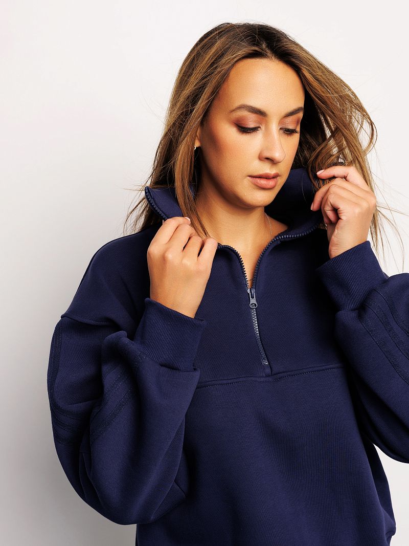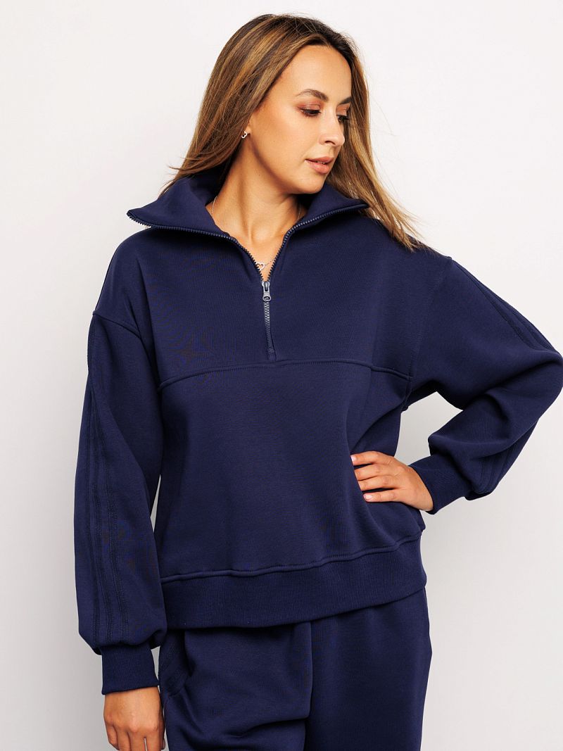 Рукава кофты декорированы лампасами, 3 полоски в стиле адик придают образу динамики.