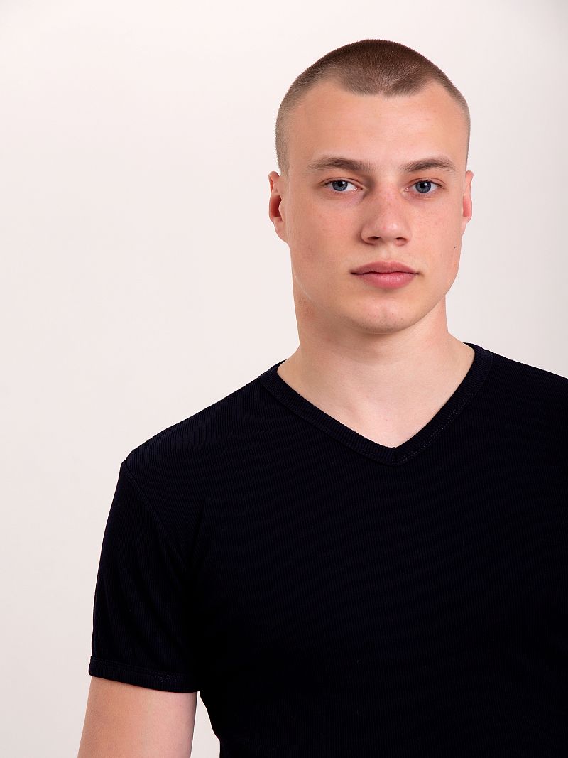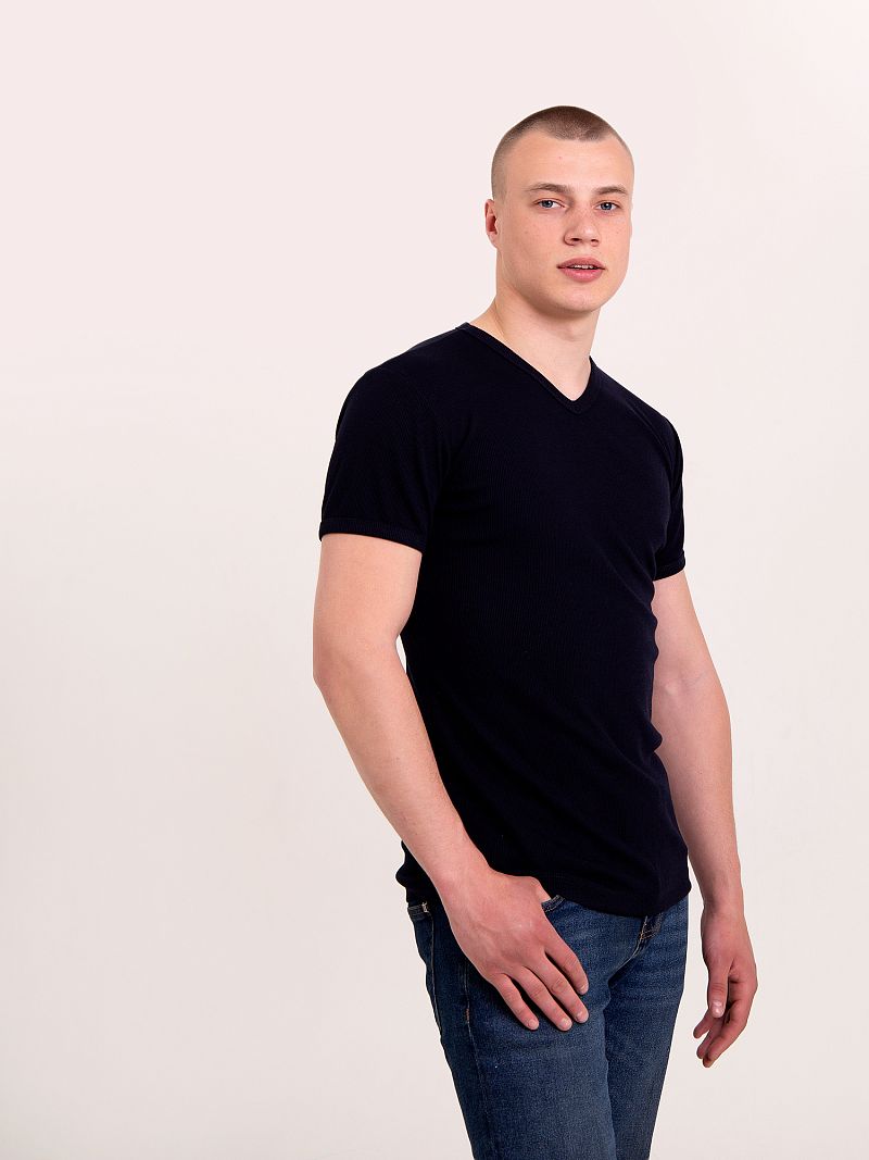 Базовая однотонная футболка, выполненная из эластичного и мягкого трикотажного полотна. Минималистичный дизайн и удобный крой сделают модель основой Вашего гардероба. Рукав короткий. Вырез горловины V-образный. Состав: 95% хлопок, 5% лайкра.