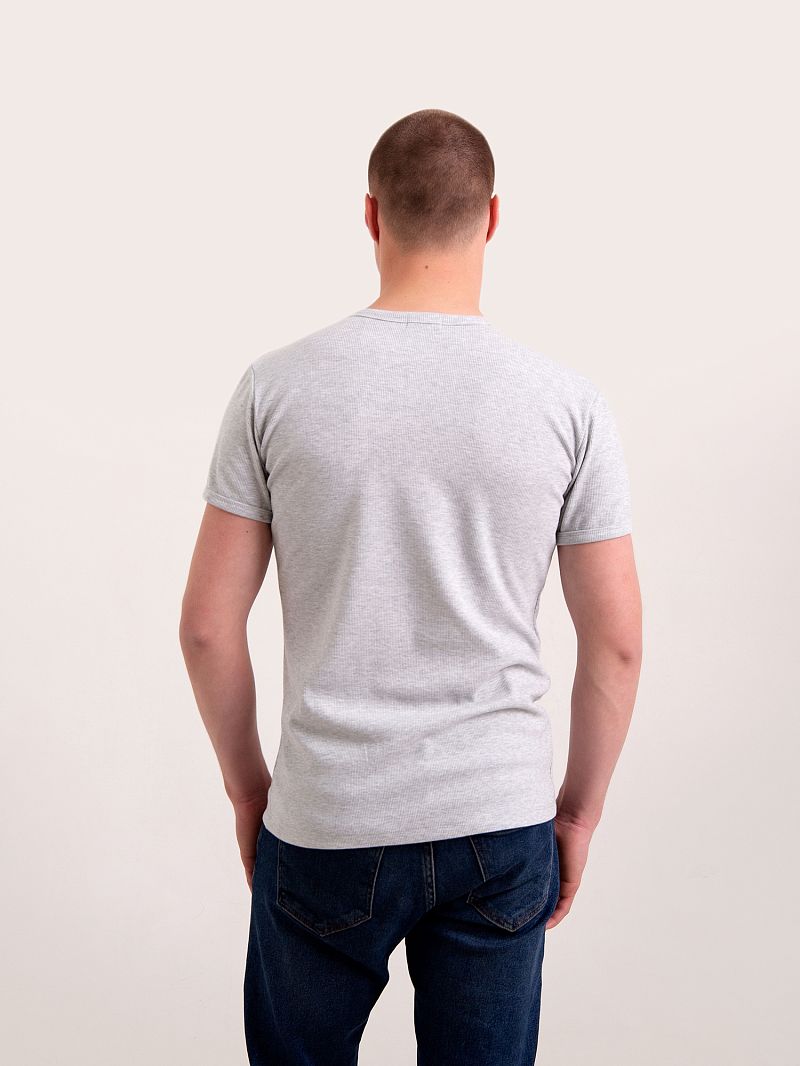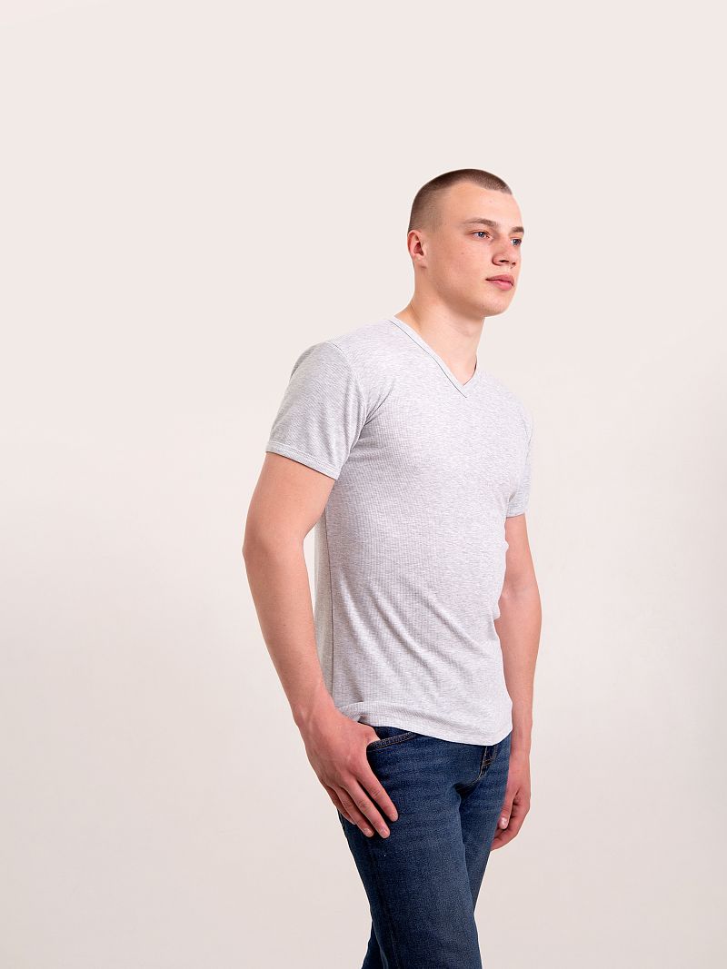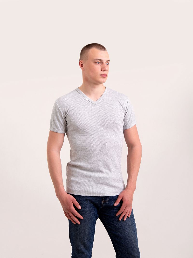 Базовая футболка в спокойной цветовой гамме, выполнена из эластичного трикотажного полотна. Универсальность модели подчёркивает лаконичность дизайна. Рукав короткий. Вырез горловины V-образный. Состав ткани: 95% хлопок, 5% лайкра. Длина изделия 75 см. Рост модели на фото 186 см.
