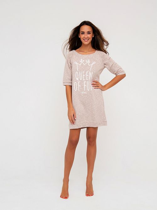Трикотажная туника, выполнена в приятной цветовой гамме. Модель оформлена крупным принтом. Рукав до локтя. Вырез горловины округлый. Модель прекрасно составит комплект с лосинами или узкими брюками. Материал - трикотажное полотно, которое обладает как достаточной плотностью, так и эластичностью. Состав: 100% хлопок. Длина изделия 87 см. Рост модели на фото 173 см.