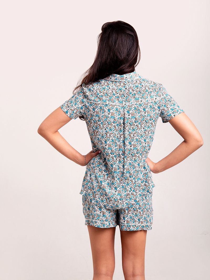 Стильный домашний костюм, состоящий из рубашки и шорт. Модель оформлена мелким цветочным принтом яркой расцветки по всей длине изделия, что добавляет настроения образу. Рубашка на пуговицах, с отложным воротничком. Рукав короткий. Шорты дополнены боковыми карманами. Состав: 100 % вискоза. Длина изделия см. Рост модели на фото 173 см.