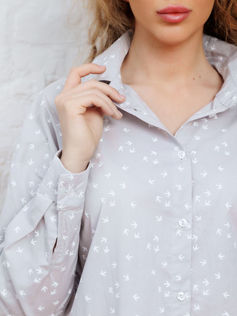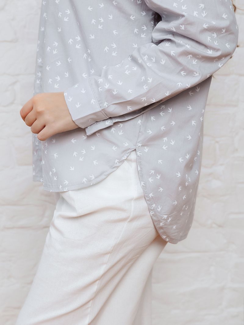 Школьная рубашка украшена принтом с птичками, который добавляет очарования и нежности вашему образу. Этот принт станет ярким акцентом и подчеркнет вашу индивидуальность, придаст изысканный и изящный вид рубашке с птицами.