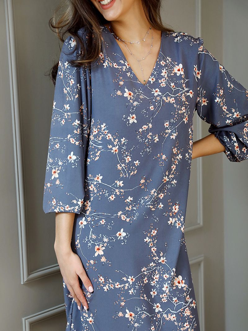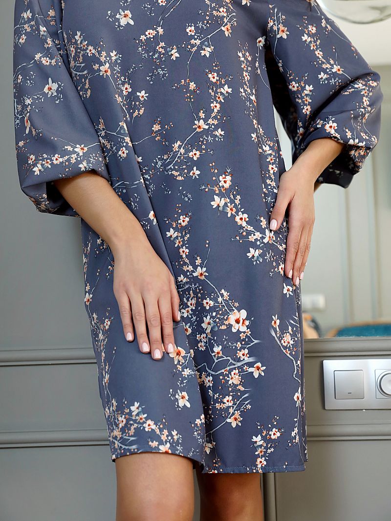 Платье из струящейся ткани свободного прямого кроя с длинным рукавом, собранным по низу на резинку, что придает платью особый шарм. V-образный вырез горловины зрительно удлиняет шею. Благородный оттенок серого и неброский принт в стиле petit fleur подчеркивают элегантность образа в целом. Платье удобно в использовании, приятная дышащая ткань очень комфортна для тела. Приобретите легкость, комфорт и свободу на каждый день, ведь эта вещь полюбится Вами с первого прикосновения. Все товары бренда Raposa производятся в России, используются ткани только премиального качества. Ограниченная коллекция только для этой весны!