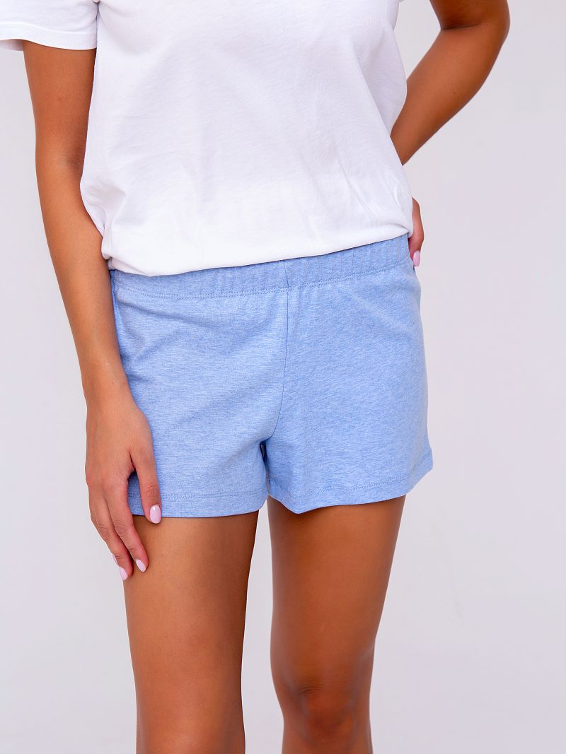 Вещь подойдет женщинам любого возраста и телосложения благодаря разнообразию размеров. Короткая длина позволяет носить голубые шорты у2к как домашнюю одежду.