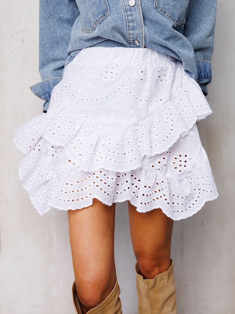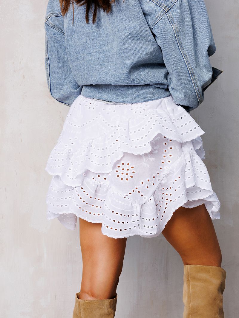 Летняя юбка с воланами от бренда Raposa станет изысканным дополнением к вашему летнему гардеробу! Юбка белая хлопковая женская с оборками и рюшами выполнена из хлопкового шитья в виде кружевного или ажурного вида. Данная юбочка на резинке обеспечивает идеальную высокую посадку, подчеркивающую фигуру. Юбка пышная выполнена в стиле бохо, который добавит легкости и свежести вашему летнему образу. Она прекрасно подойдет как для повседневного образа, так и для пляжных прогулок или вечерних выходов. Особое внимание заслуживают воланы, которые придают уникальный вид, делая юбку ярусной. Они создают динамичный образ, что делает модель женственной и воздушной. Этот модный аксессуар подчеркнет вашу индивидуальность, добавив нотку богемного шарма. Хлопковая ткань шитье не просвечивает, обеспечивая комфорт и приятные ощущения на коже, что особенно актуально летом. Эта юбка женская мини идеально подходит для подростков, так и для женщин.