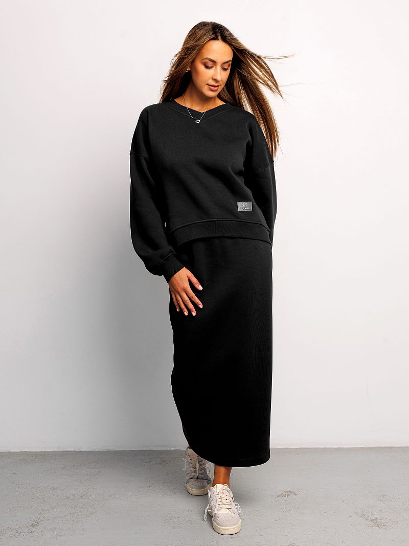 Юбка женская макси из качественного материала футер 3 нитка ткань с начесом от бренда Raposa – базовая модель Вашего гардероба, сочетающая в себе комфорт, функциональность и безупречный стиль. Юбка офисная утепленная на резинке с брендированной нашивкой на поясе, с разрезом сзади не сковывает движения, удобная и женственная. Модель сшита в стиле спортивный шик из качественного трикотажа футера (хлопок 65%) . Этот хлопковый материал отлично держит форму, не скатывается и не линяет. Прямой крой и широкая эргономичная резинка на талии обеспечат идеальную посадку, помогут подчеркнуть достоинства и скрыть недостатки Вашей фигуры. Юбка длинная подойдет для самых разных стилей (кэжуал, спорт шик, y2k) и луков, она уместна как в повседневной носке, так и для деловой встречи, для романтического свидания. Юбка в пол представлена в широкой размерной сетке до 56 размера для прекрасных дам больших размеров плюс сайз, в послеродовый период для модных мамочек. Эта плотная зимняя модель без принта идеально садится на фигуру и акцентирует внимание на Ваших достоинствах. В сочетании с футболкой, свитшотом, худи и кроссовками можно создать женственный спортивный образ. Юбка черная соответствует школьному дресс-коду и будет уместна на учебных занятиях для девочки подростка, подойдет как мусульманская или православная одежда. Юбка теплая женская подарит уют и комфорт в холодный осенне-зимний период и станет незаменимой вещью в наступающем сезоне! Идеально подойдет для фотосессии family look или празднования Нового года на природе. Предварительно постирайте изделие, чтобы удалить лишний начес с внутренней стороны. Не стоит беспокоиться, если внутри начнут образовываться небольшие "катышки" — это не является дефектом. При соблюдении рекомендаций по уходу он будет выглядеть как новый долгое время, не скатается и не сядет.