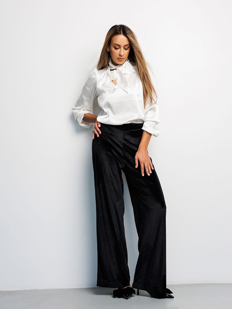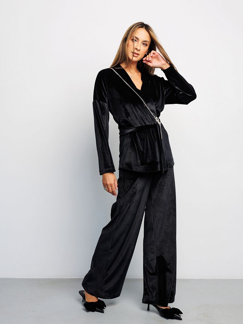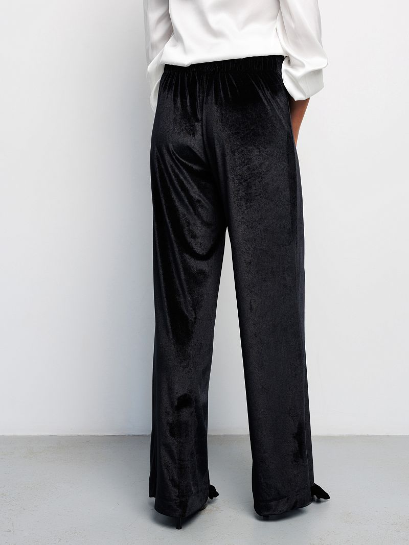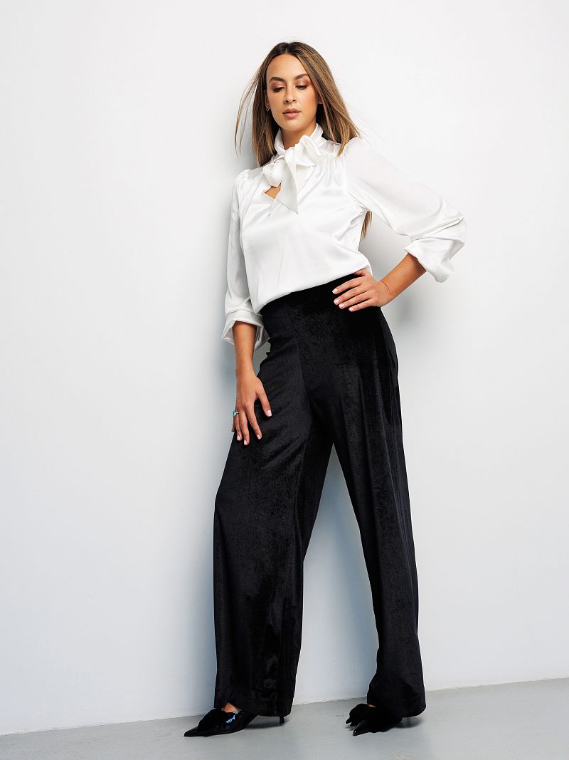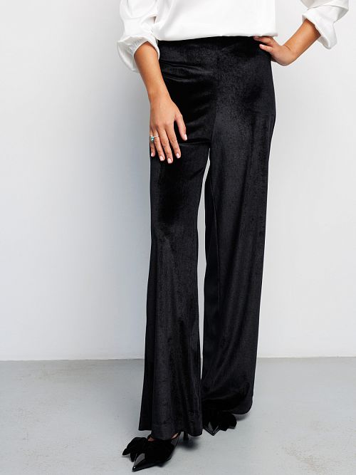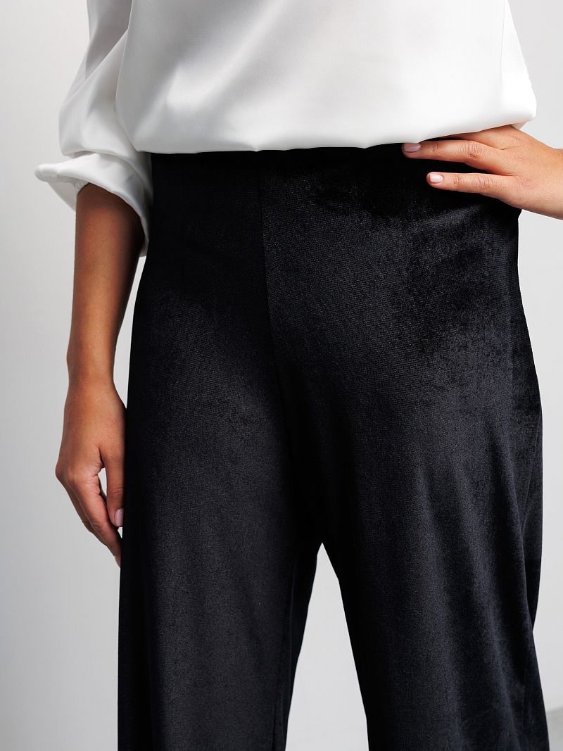Бренд Raposa представляет Вашему вниманию классические велюровые женские брюки палаццо в стиле олд мани. Брюки чёрные женские станут идеальным дополнением к вашему базовому гардеробу и будут прекрасно сочетаться с различным верхом и аксессуарами. Нарядные, они превосходно подойдут для любого случая, будь то офис, вечернее или праздничное мероприятие. Идеальны как для высоких, так и невысоких женщин. Бархатные брюки, слаксы, имеют широкий размерный ряд до 56 размера для женщин плюс сайз. Особенности модели: высокая посадка, прямой клеш от бедра, красивая линия талии. Струящиеся брюки женские гэтсби стильно облегают женскую фигуру, имеют корректирующий эффект, стройнят и не сковывают движения, позволяя Вам чувствовать себя комфортно на протяжении всего дня. Благодаря эластичной эргономичной резинке на талии широкие штаны обеспечивают максимальное удобство и идеальную посадку на любой рост. Брюки палаццо женские выполнены из высококачественного материала – плюш, мягкого и приятного на ощупь, который, несомненно, подарит дополнительный лоск и привлечет восхищенные взгляды окружающих. Эти роскошные, универсальные и комфортные брюки подойдут на любой сезон и будут уместны по любому поводу Новый год, День рождения, 8 марта для женщин и девушек подростков, предлагая великолепную посадку благодаря удобному покрою.