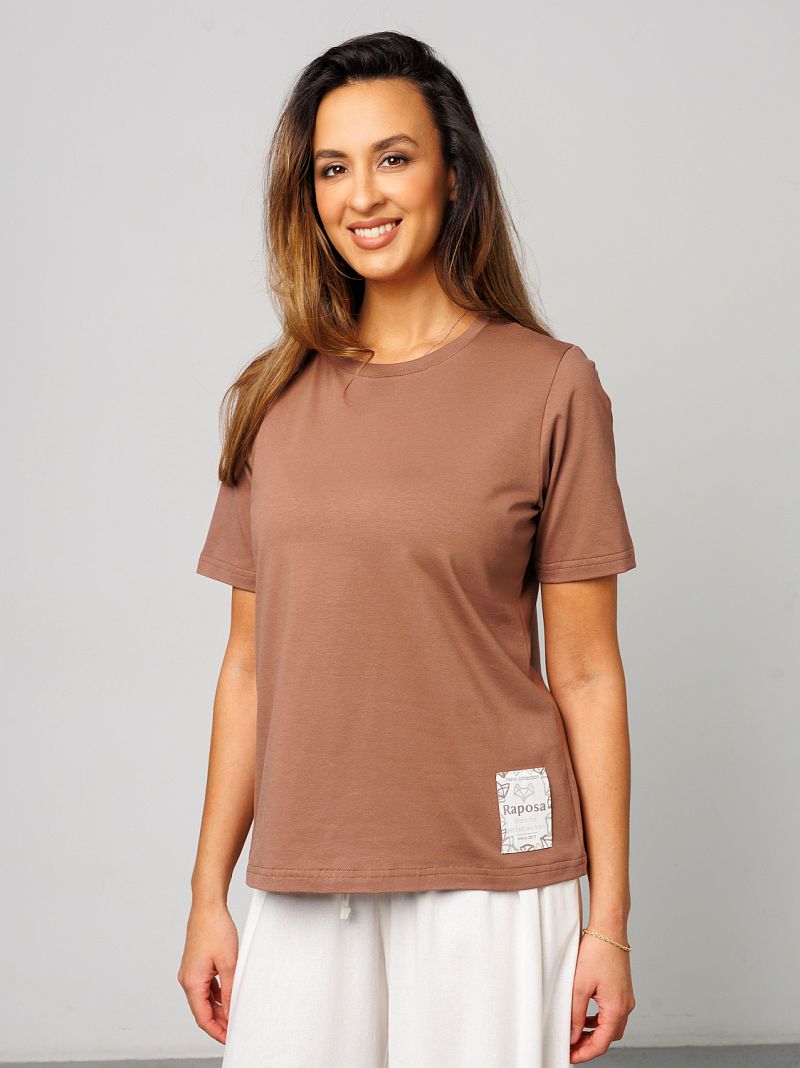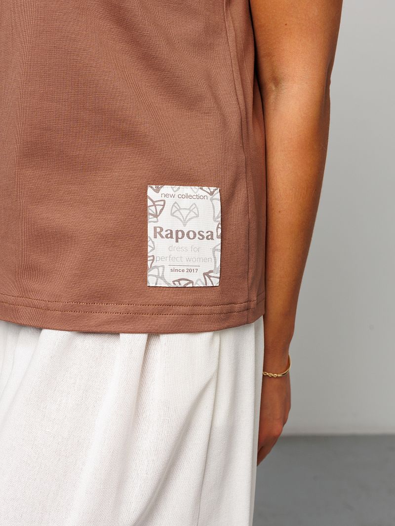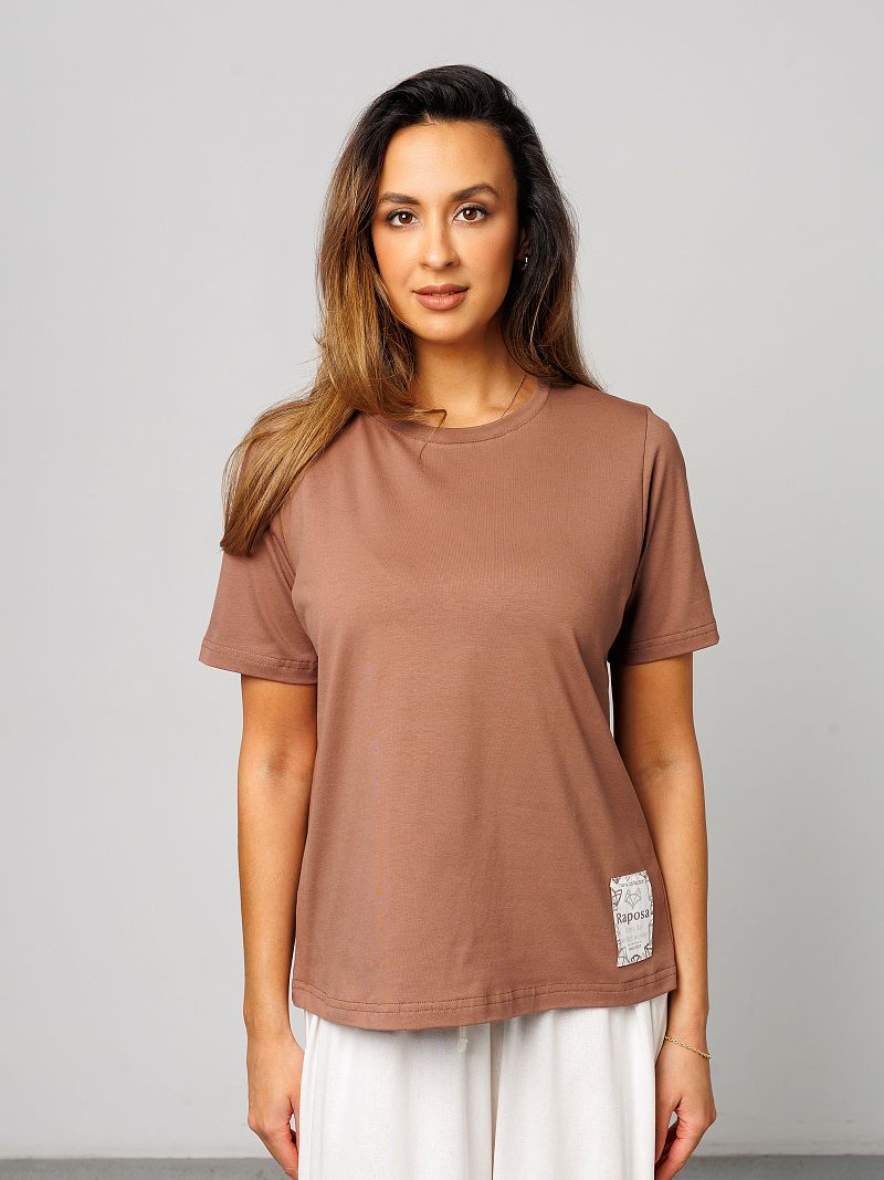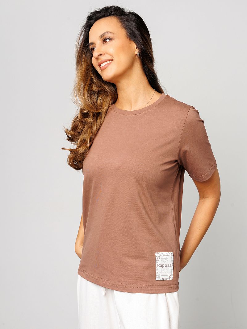 Футболка женская от Raposa – это идеальный выбор для современных девушек, ценящих комфорт и стиль. Изготовленная из мягкого и дышащего материала, состоящего из 92% хлопка и 8% лайкры, она подарит Вам ощущение легкости и свободы движений. Модель с коротким рукавом и свободным кроем оверсайз идеально подходит для жарких летних дней, а также станет отличным вариантом для домашней одежды. Благодаря универсальному коричневому цвету и отсутствию рисунка, однотонная футболка легко сочетается с любыми элементами гардероба, под пиджак. Хороша как футболка в офис женская или блузка повседневная. Наличие нашивки с названием бренда Raposa добавляет стильный акцент. Кофточка подходит для полных девушек больших размеров плюс сайз до 54 и 56 и для высоких и невысоких, обеспечивая комфортную посадку. Футболка с принтом станет незаменимой как для повседневной носки, так и для занятий спортом, фитнесом, на физкультуру в школу или просто для отдыха на пляже. Благодаря натуральному составу хлопка, футболка мокко мусс приятна к телу и не вызывает аллергических реакций. Модель прекрасно подойдет для беременных женщин, а также для девочек-подростков, которые предпочитают стиль кэжуал или y2k. Футболка Raposa – это элегантная классика и базовый элемент гардероба, который станет Вашим верным спутником в любой ситуации и поможет в создании нарядного образа на каждый день.