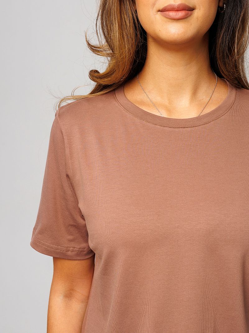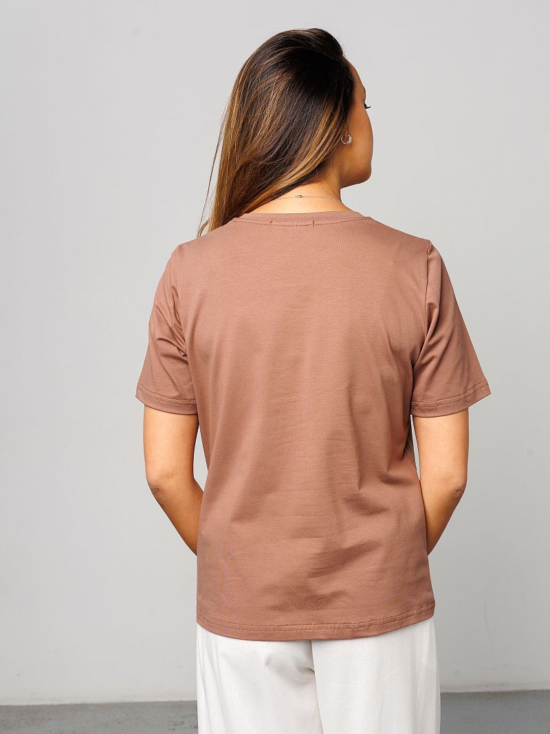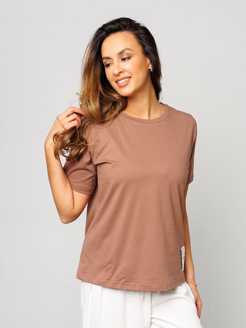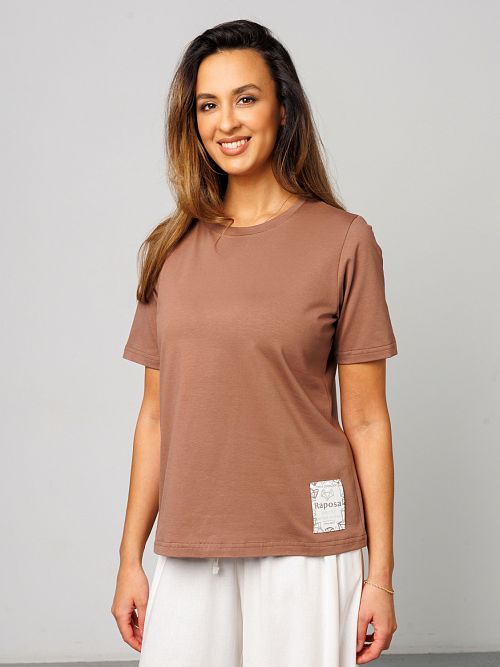 Футболка женская от Raposa – это идеальный выбор для современных девушек, ценящих комфорт и стиль. Изготовленная из мягкого и дышащего материала, состоящего из 92% хлопка и 8% лайкры, она подарит Вам ощущение легкости и свободы движений. Модель с коротким рукавом и свободным кроем оверсайз идеально подходит для жарких летних дней, а также станет отличным вариантом для домашней одежды. Благодаря универсальному коричневому цвету и отсутствию рисунка, однотонная футболка легко сочетается с любыми элементами гардероба, под пиджак. Хороша как футболка в офис женская или блузка повседневная. Наличие нашивки с названием бренда Raposa добавляет стильный акцент. Кофточка подходит для полных девушек больших размеров плюс сайз до 54 и 56 и для высоких и невысоких, обеспечивая комфортную посадку. Футболка с принтом станет незаменимой как для повседневной носки, так и для занятий спортом, фитнесом, на физкультуру в школу или просто для отдыха на пляже. Благодаря натуральному составу хлопка, футболка мокко мусс приятна к телу и не вызывает аллергических реакций. Модель прекрасно подойдет для беременных женщин, а также для девочек-подростков, которые предпочитают стиль кэжуал или y2k. Футболка Raposa – это элегантная классика и базовый элемент гардероба, который станет Вашим верным спутником в любой ситуации и поможет в создании нарядного образа на каждый день.